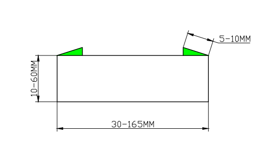 1.兩端折:商標折后最長尺寸165MM、最短尺寸30MM.